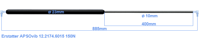 Erstatningsgassfjær for APSOvib 12.2174.6015 150 Newton. Dette passer en (eventuelt allerede er der) ball med diameter på 10mm. En tilsvarende ball er inkludert. Merke: Hahn.